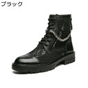 メンズ ショートブーツ 24-28.0cm メッシュ 春夏秋 通気 アンクルブーツ レースアップ バックジップ 軽便 脚長效果 コンフォート 個性的 着脱やすい 防水ブーツ ヒップホップ 渋谷系 原宿系 トレンド パーティー