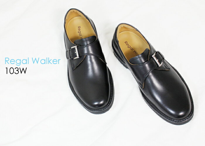 ■ REGAL WALKER リーガルウォーカー 103W モンクストラップ 幅広3Eブラック ビジネス インソール 足のアーチを支えるパッド2種類付