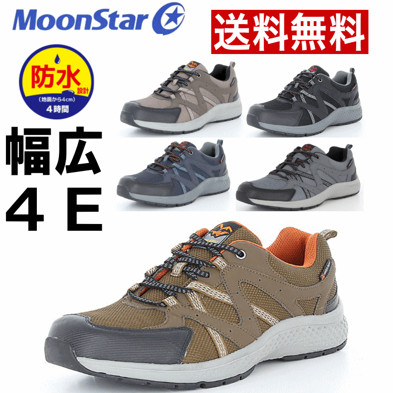 送料無料 メンズ 幅広 防水 カジュアルスニーカー トレッキングシューズ SPLT M195 ムーンスター サプリスト ローカット ウォーキング 防水 防滑 4E 靴 黒 茶 ブラウン ブラック ネイビー 通勤 通学 外反母趾 24.5cm 25cm 25.5cm 26cm 26.5cm 27cm 27.5cm 28cm 29cm 30cm