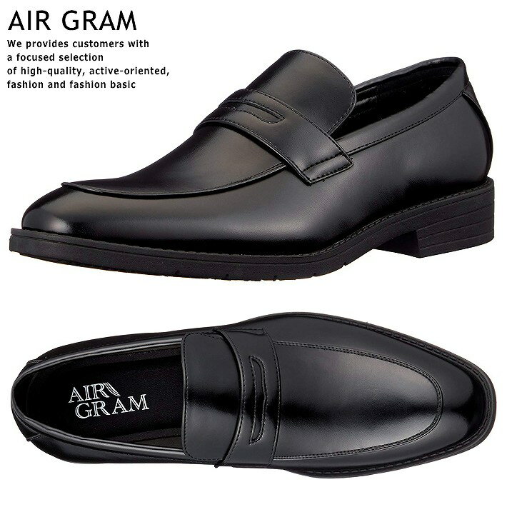 ビジネスシューズ メンズ 超軽量 AIR GRAM 防水 防滑 幅広 EEE 靴 ローファー シューズ メンズ ブラック 黒 1723 Y_KO SHA 190210 プレゼント ギフト