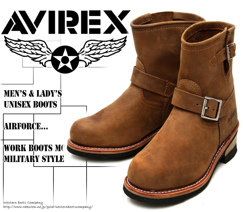 [AVIREX] アヴィレックス(アビレックス) AV-2225 HORNET Crazy Horse クレイジーホース(ブラウン) メンズ&レディース 本革 ライダースブーツ ショート エンジニアブーツ