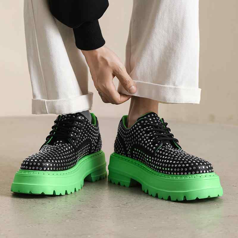 厚底 靴 スタッズ オックスフォードシューズ グリーン 個性的 メンズ 韓国 シューズ カジュアル メンズファッション