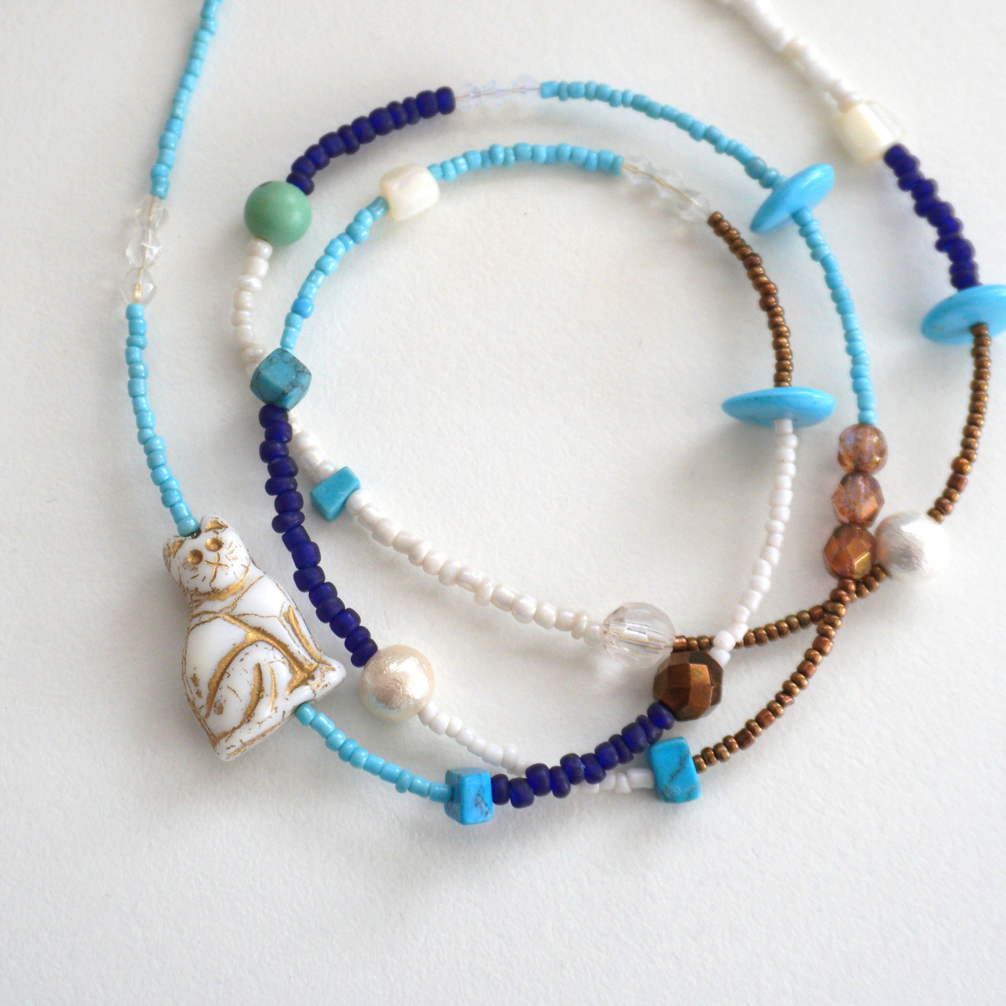 商品説明 ブルー、ネイビー系のビーズにコットンパールや天然石が飾られています。ワンポイントで飾られた白い猫モチーフがキュートです。シリコンパーツを外すとネックレスやマスクコードしてもお使い頂けます。 素 材 ビーズ、天然石、真鍮 サイズ 約 全長 78cm ブランド LUVRIオリジナルのメガネチェーンです。リーディンググラスやPC用メガネなど着け外しが多い方には置き忘れ防止のため大変便利です。ネックレスやマスクチェーンとしてもお使いいただけます。 メガネチェーン ラインナップ ▼ 付属品 オーガンジーの巾着袋 ご注意事項 - 天然素材を使用したハンドメイドのため商品には個体差がございます。 - 金具の仕様は変更になる場合がございます。 - 商品は太陽光をメインに撮影しております。実際の色に近づけるよう努力しておりますが、ご使用のモニター環境によっては実際の色と差が生じる場合がございます。 ギフト包装 こちらからご注文ください。 ギフトラッピング ▼