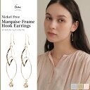 ピアス 日本製 金属アレルギー対応 ニッケルフリー マーキス フック ビジュー リーフ ロング 大ぶり ロンデル ミラーボール 揺れる スイング ピンクゴールド 上品 シルバー ゴールド 雫 プレゼント ギフト 送料無料 lokumi