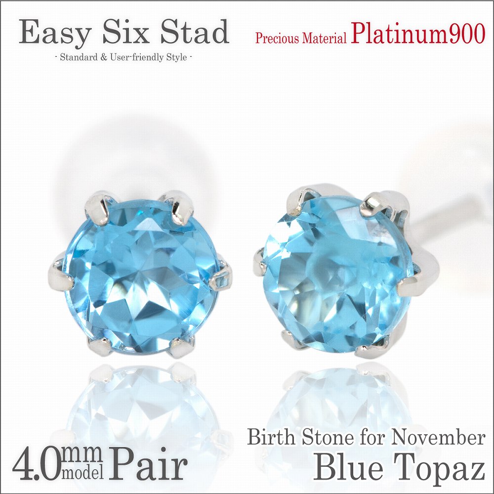 ブルートパーズ ピアス プラチナ 900 Pt900 両耳用 薄型6本爪 4mm 11月 誕生石 金属アレルギーに優しい fourm クリスマス ギフト Xmas Christmas レディース メンズ 男性 女性 ラッピング 包装 袋 誕生日 プレゼント ケース 箱 華奢 可愛い おしゃれ 手紙 記念