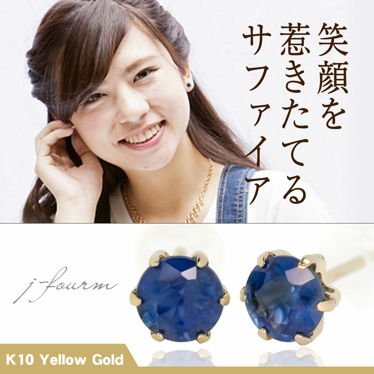 サファイア ピアス 9月 誕生石 両耳用 送料無料 K10 イエローゴールド 4mm 薄型6本爪 スタッドピアス 一粒ジュエリー fourm クリスマス Xmas Christmas レディース メンズ 男性 女性 ラッピング 包装 袋 誕生日 プレゼント ケース 箱 華奢 可愛い おしゃれ 手紙
