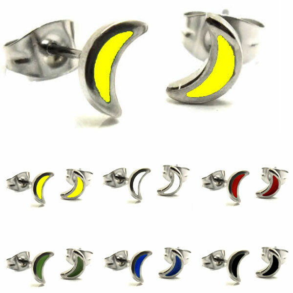 カラームーンステンレスピアス/1個販売 三日月 サージカルステンレス316L 20G 20ゲージ レディース メンズ キャッチピアス スタッドピアス ブラック 黒色 青色 ぶるー 緑色 グリーン 赤色 レッド 白色 ホワイト 黄色 イエロー 男性 女性 つけっぱなし 人気 プレゼント 贈答