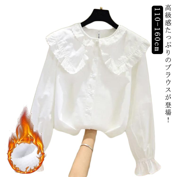 可愛い シャツ 長袖 裏起毛 無地 かわいい ネック ブラウス 女児 キッズ 薄手 ホワイト 韓国子供服 春秋 きれいめ 白 カジュアル 女の子 襟付き 冬 ジュニア フォーマル 女の子 通園 通学 発表会 可愛い トップス プレゼント フリルブラウス