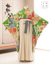卒業袴レンタル 女の子 小学校卒業式 正絹着物 h0213 小学生 ジュニア袴 袴セット 子供着物レンタル 十三参り ハーフ成人式 ハイカラさん コスプレ 12歳 13歳 人気 かわいい レトロ モダン rental 2022 緑地に彩りの絢爛慶麗花【レンタル】
