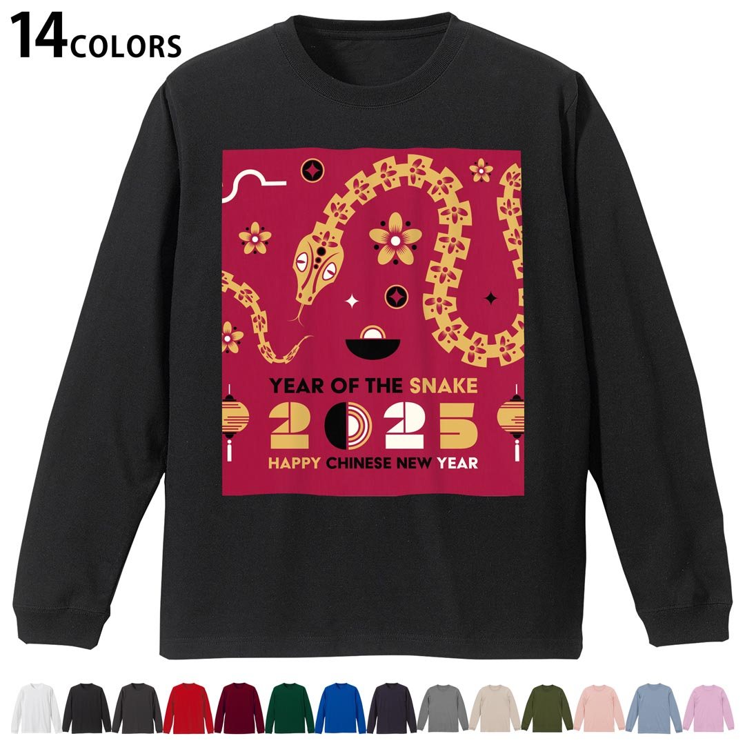 選べる14カラー 長袖リブ付きTシャツ メンズ レディース ユニセックス unisex 長袖 デザイン XS S M L XL 2XL Tシャツ ロング ティーシャツ T shirt 035589 お正月 新年 newyear 巳年