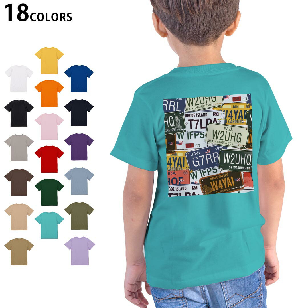 選べる18カラー Tシャツ キッズ 半袖 ホワイト グレー デザイン 90 100 110 120 130 140 150 160 Tシャツ ティーシャツ T shirt 000171 プレート 英字 看板