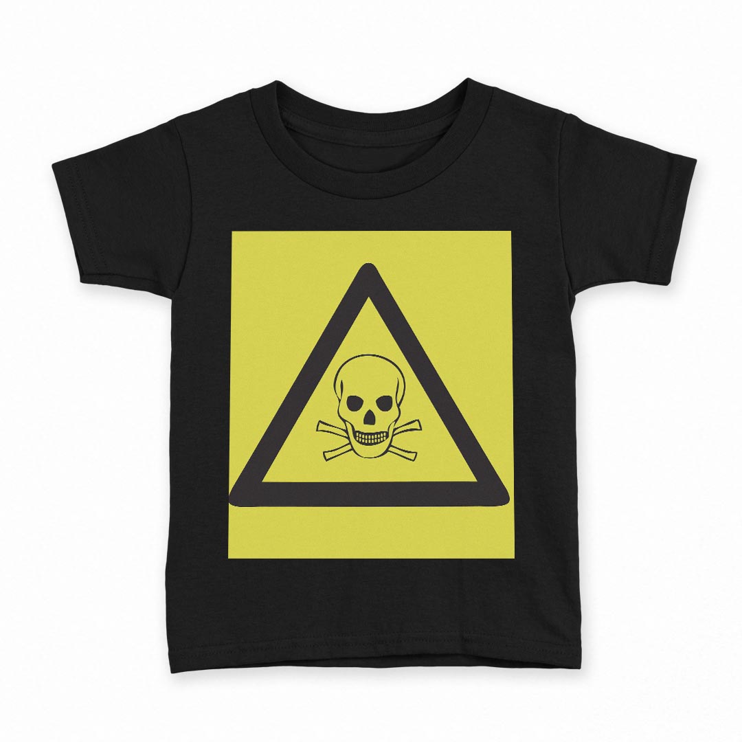 tシャツ キッズ 半袖 黒地 ブラック デザイン 90 100 110 120 130 140 150 160 Tシャツ ティーシャツ T shirt 000041 危険 看板 ガイコツ