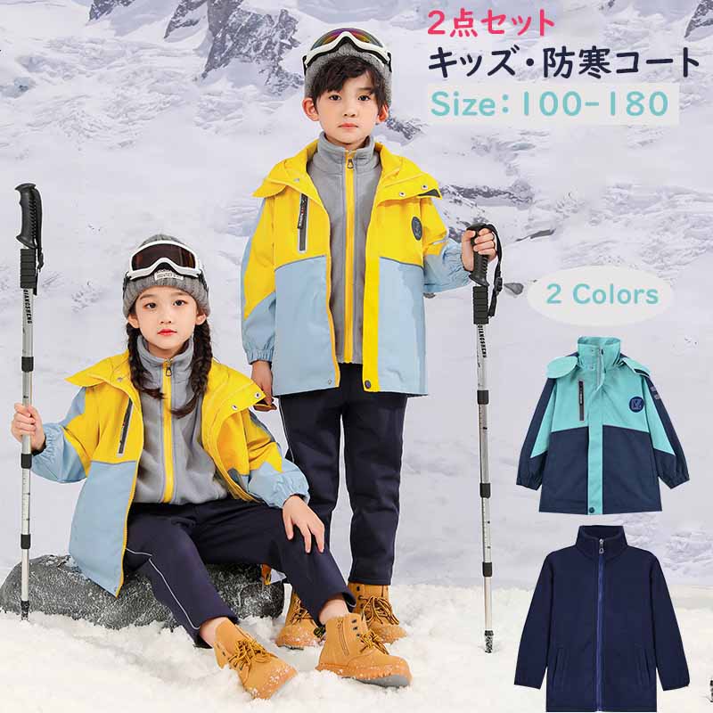 【期間限定 20%OFF】 キッズ スキー コート マウンテンパーカー 防寒 2点セット 撥水 かわいい 男の子 女の子 取り外し 登山 山登り キャンプ ジャケット ウィンドブレーカー 裏ボア アウター ジャケット 秋 冬 防水 防風 フード付き コンパクト アウトドア 散歩