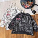 Tシャツ キッズ 春秋 子供服 カジュアル コットン 落書きプリント 長袖トップス グレー ホワイト 90cm 100cm 110cm 120cm 130cm 140cm(x5)