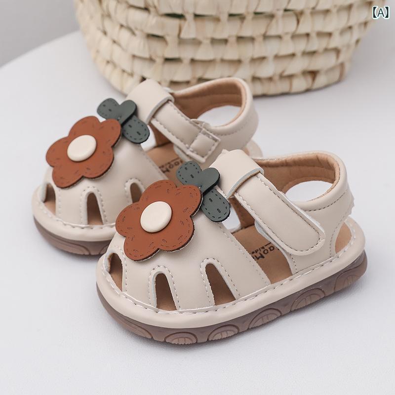ベビー サンダル 女の子 0歳 1歳 2歳 夏 靴 音が鳴る 笛付き 歩行練習 滑り止め 柔らかい底 ベージュ ピンク 花柄 かわいい 通気性 普段使い