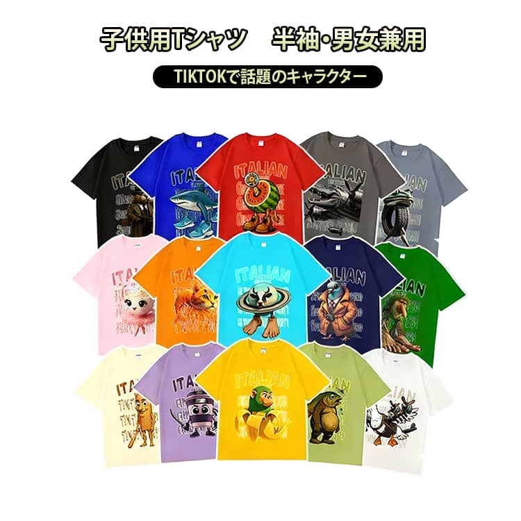 イタリアンブレインロット Italian brainrot トゥントゥントゥンサフール プリント キャラクター 半袖 Tシャツ トップス 子供服 キッズ 男の子 女の子 プレゼント 誕生日 小学生 通学 通園 カジュアル 送料無料