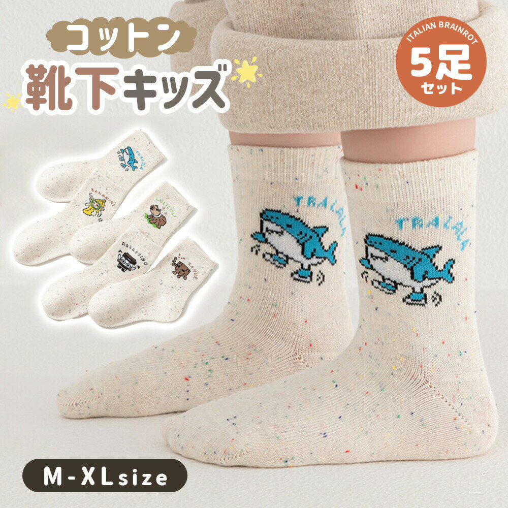 イタリアンブレインロット 靴下 5足セット トゥントゥントゥンサフール Italian brainrot TungTungTungSahur 子供 Tralalelo Tralala グッズ (5足組) 通気 トララレロ・トララ 面白い キッズ 女の子 男の子 プレゼント通学 通園着 誕生日 小学生 春夏秋冬 オシャレ