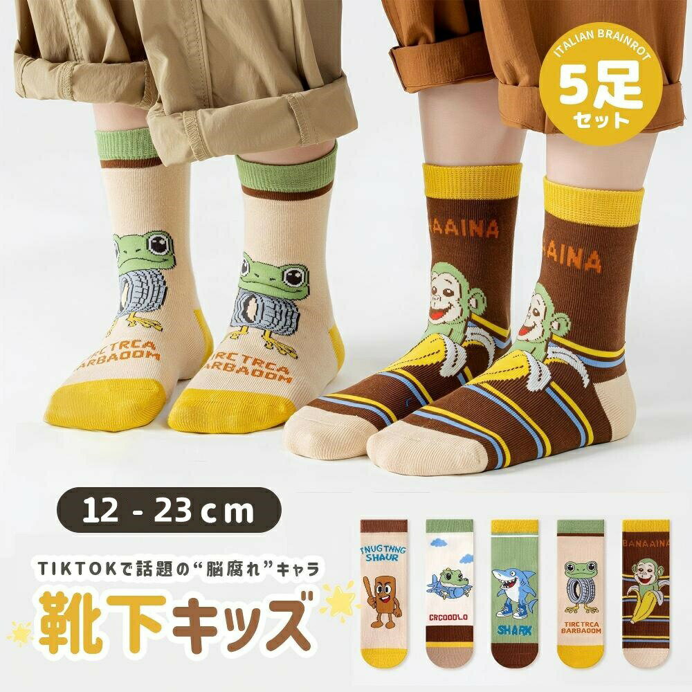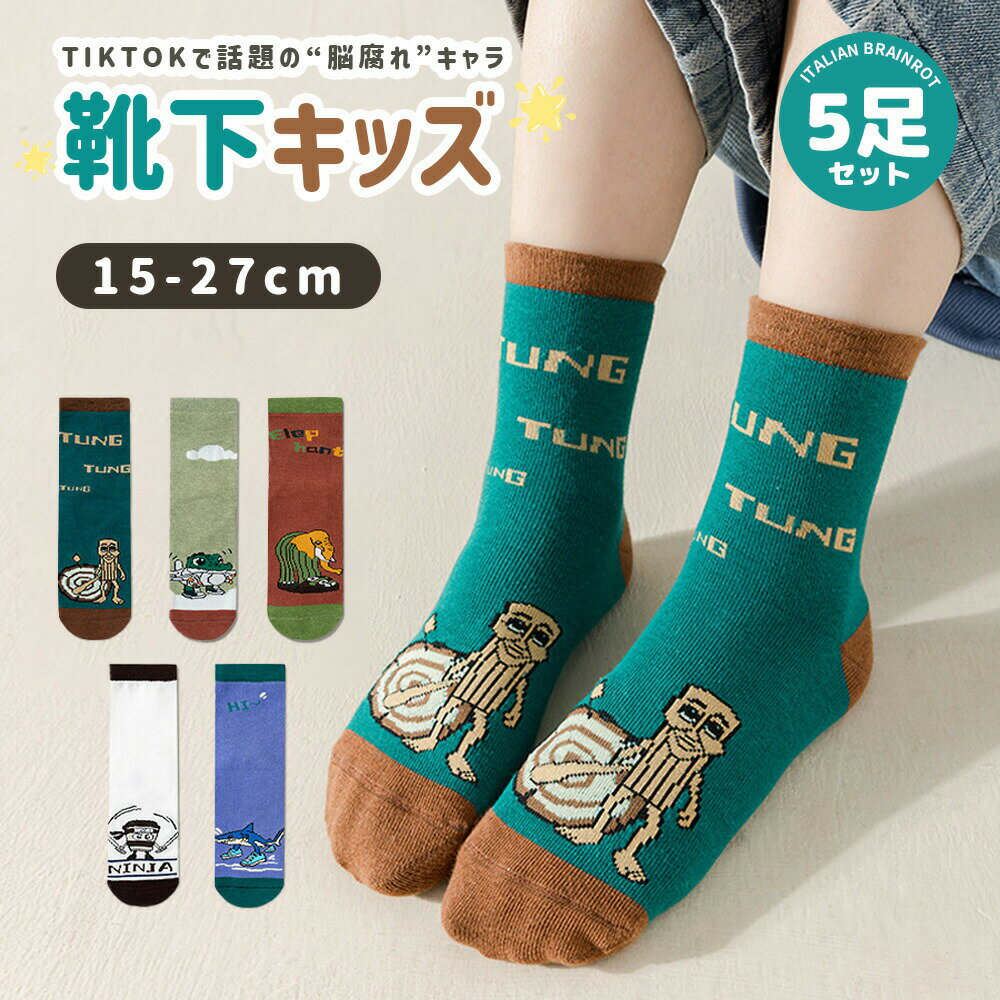 イタリアンブレインロット 靴下 5足セット トゥントゥントゥンサフール Italian brainrot TungTungTungSahur 子供 5ペア Tralalelo Tralala グッズ 通気 トララレロ・トララ 面白い キッズ 女の子 男の子 プレゼント 小学生 春夏秋冬 オシャレ