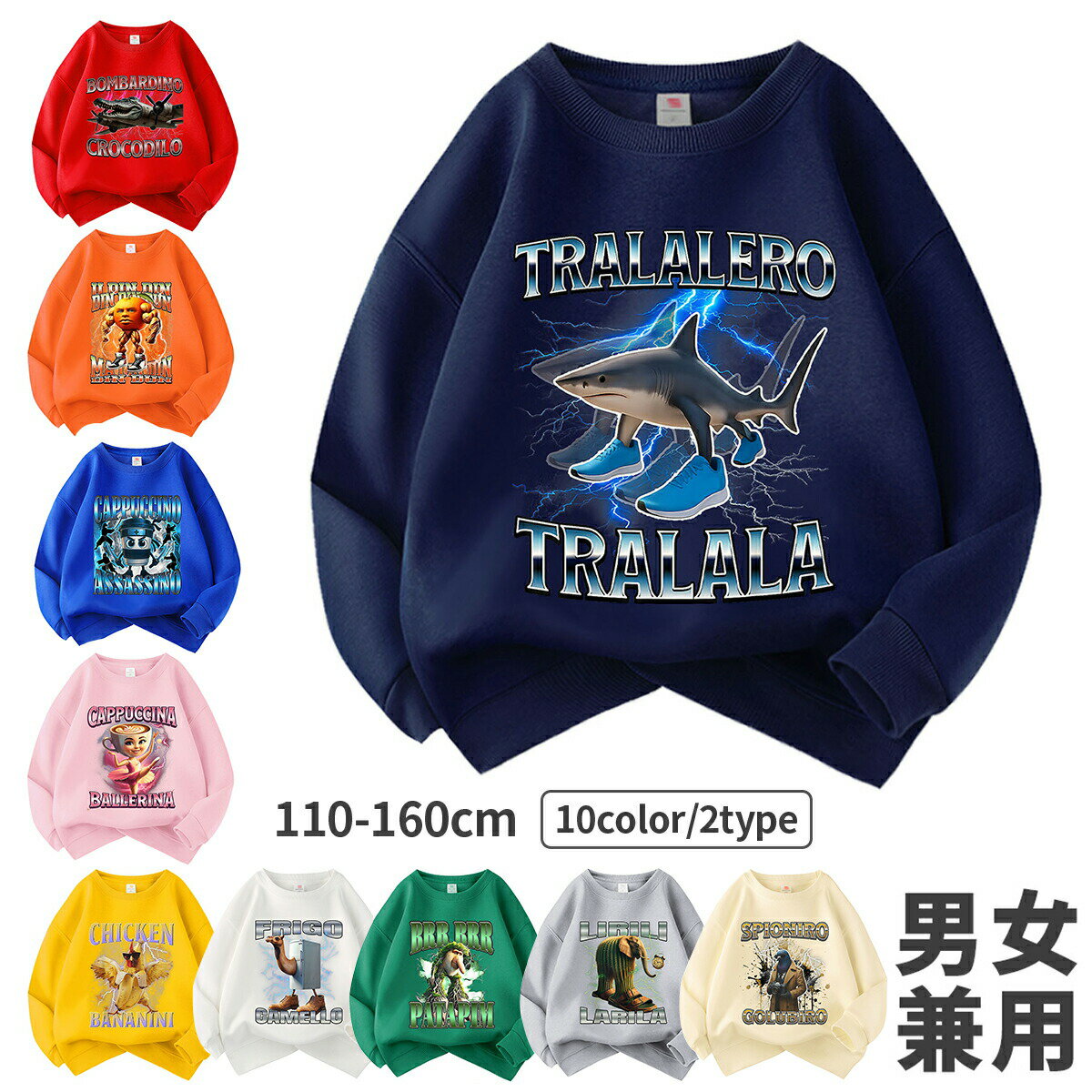 イタリアンブレイン ロット スウェット 秋服 長袖 Italian brainrot トゥントゥントゥンサフールスウェット タタタタサフール イタリアンブレインロット 子供服 長袖Tシャツ キッズ スウェット 綿 大人 子ども服 暖かい ゆったり 秋 冬 通学 通園着 誕生日 プレゼント