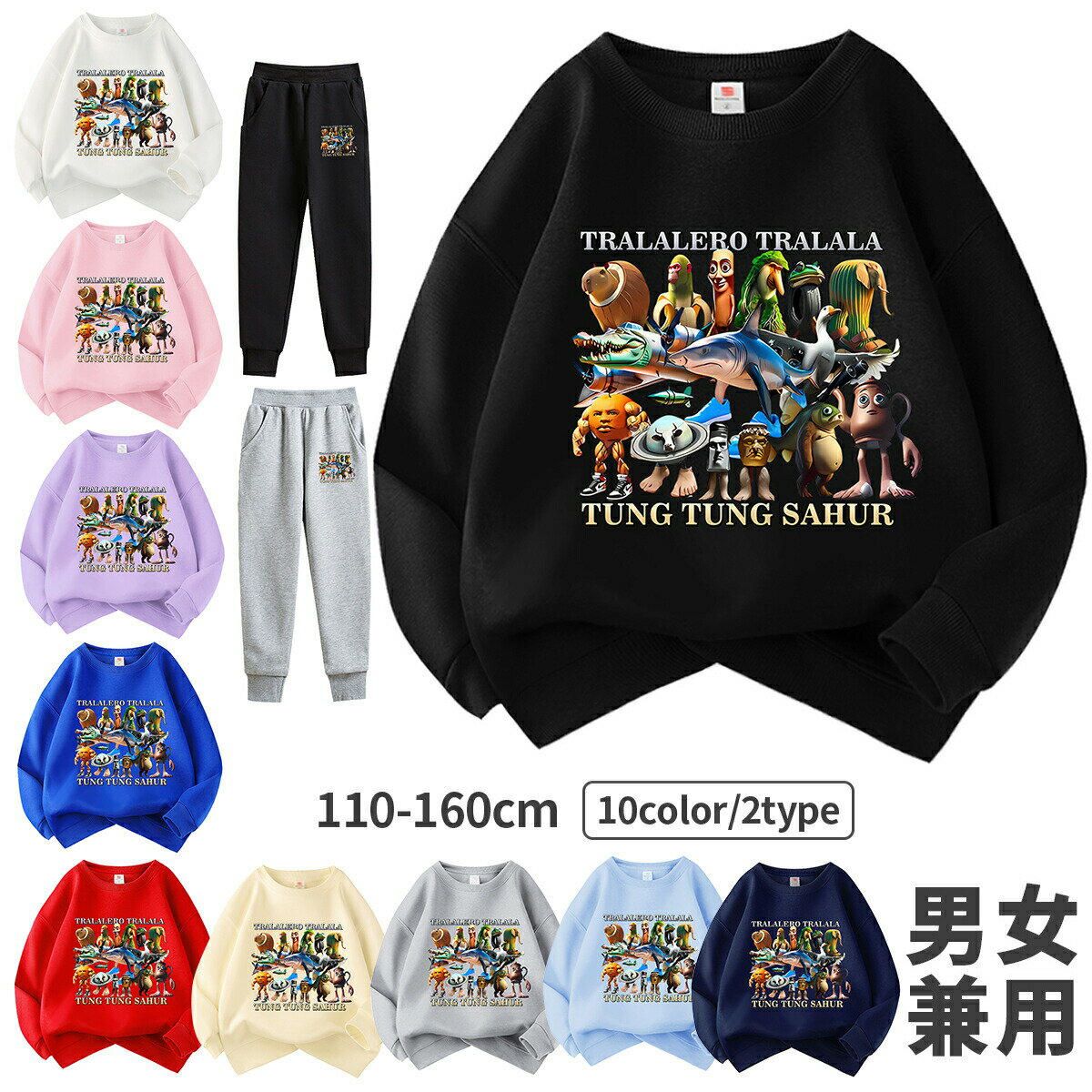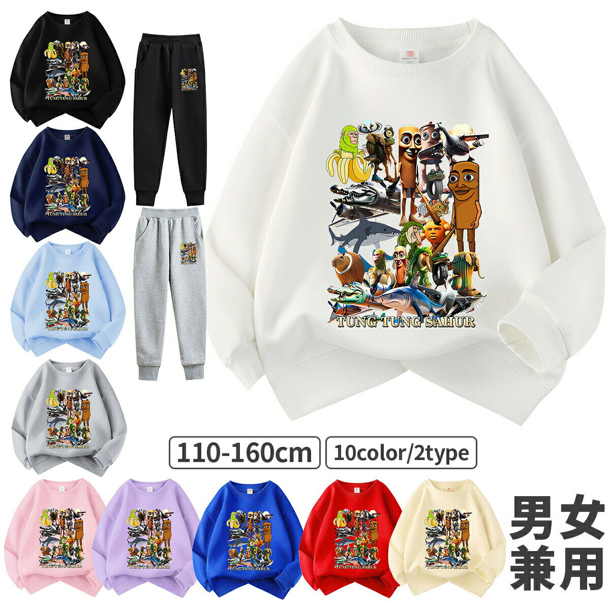 イタリアンブレイン ロット 秋服 スウェット 長袖 Italian brainrot トゥントゥントゥンサフールスウェット タタタタサフール イタリアンブレインロット 子供服 長袖Tシャツ キッズ スウェット 綿 大人 子ども服 暖かい ゆったり 秋 冬 通学 通園着 誕生日 プレゼント