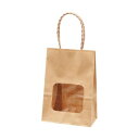 (同梱不可) ウィンドウミニバッグ 茶無地 クラフト 25枚 XZK65105 窓にフィルムがついている小さな手提げ袋