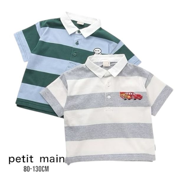 【2025春夏新作】Petit main【Disney】ラガー半袖シャツ No.9552242(プティマイン 子供服 男の子 ベビー キッズ トドラー トップス 半袖 Tシャツ 半T カーズ ベイマックス コラボ ボーダー柄 可愛い カッコイイ 人気 流行り 春 夏 )
