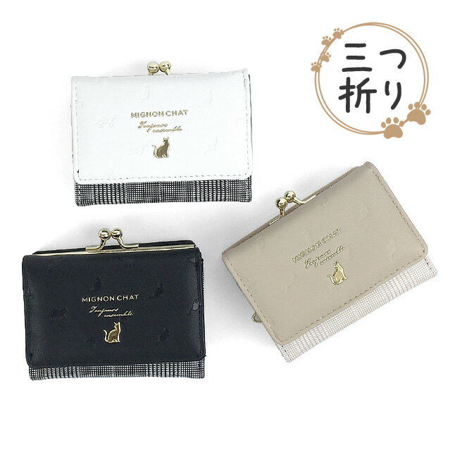 キッズ 財布 女の子 三つ折り財布 mls-4202 ねこちらし がま口財布 お財布 ミニ財布 三つ折り財布 コンパクト財布 おしゃれ 大人ガーリー シック シンプル ネコ 猫 キャット グレンチェック キッズ ジュニア こども 小学生 中学生 女の子 女子 女性 ガールズ レディース