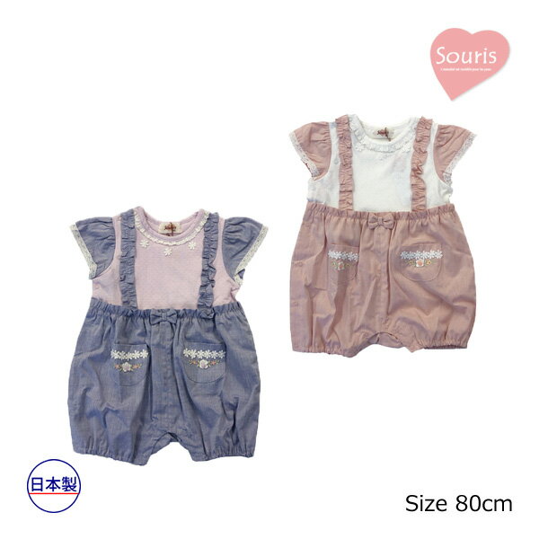 ●50%OFFセール●スーリー Souris シャンブレー ロンパース (80)アウトレット 半額 セール 女の子 子ども服 ベビー 赤ちゃん ベビー服 ギフト プレゼント
