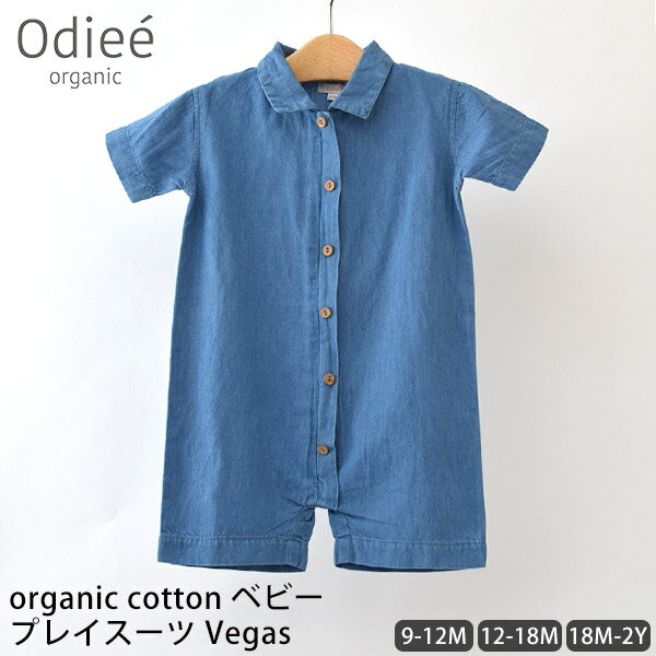 Odiee オーガニックコットン ベビー プレイスーツ Vegas | オーガニック コットン ベビー ロンパース お出かけ ギフト プレゼント 半袖 春夏 デニム シャンブレー ダンガリー [M便 1/1]