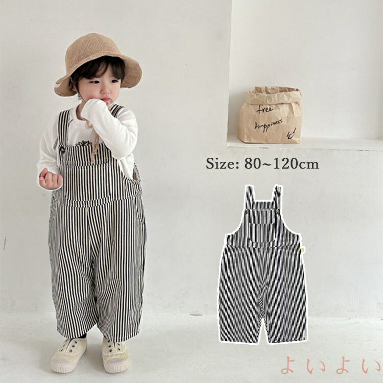 【送料無料】子供 サロペット 男の子 女の子 キッズ パンツ ストライプ ゆったり コットン ワイド オーバーオール ノースリーブ 長ズボン ナチュラル 綿 カジュアル 春夏秋冬 シンプル ジャンプスーツ オールインワン 可愛い お洒落 子供服 北欧