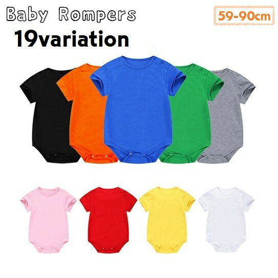 ベビー用の半袖ロンパースです。 シンプル無地で着回し力抜群のアイテム◎ 股下ボタン付きでおむつ交換もラクラク♪ 【サイズについて】 画像をご参照ください。 【カラーについて】 生産ロットにより柄の出方や色の濃淡が異なる場合がございます。 お使いのモニターや撮影時の光の加減などにより 画像と実際の商品のカラーが異なる場合もございます。 予告なしにカラーやデザインなどの変更がある場合もございます。 【素材について】 綿 【補足説明】 ※色落ちする場合がございます。手洗い後、ご着用くださいますようお願い致します。