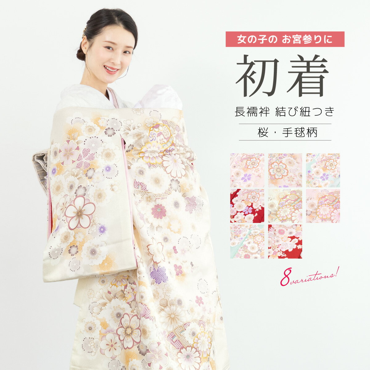 商品詳細spec.商品番号assort-ub0006色A(sbn-ubu10131)B(sbn-ubu10132)C(sbn-ubu10133)D(sbn-ubu10134)E(sbn-ubu10135)F(sbn-ubu10136)G(sbn-ubu10137)H(sbn-ubu10138)素材表地 ポリエステル100%胴裏 ポリエステル100% 下着 ポリエステル100%注意事項※襦袢や裏地の色はメーカー都合により変更となる場合があります。※専用の保存箱の付属はございません。サイズ表身丈袖丈裄丈サイズ約97cm約57cm約48cm 女の子のお宮参りにおすすめな長襦袢付き初着赤ちゃんのお宮参りを素敵に彩る【高級初着(産着)・下着(長襦袢)】のセットです。扇子や手毬に桜の花々が舞う中、桜や手毬が金駒刺繍で縁取られた華やかなデザインです。生地は、正絹の着物にも見劣りしない高品質のポリエステル素材です。ふわりとした着心地で、長く着ていても疲れにくい着物です。ポリエステル素材ですので、お手入れもしやすく衛生的です。仕立て上がりですので、お届け後すぐにお召しいただけます。着物全体に華やかな吉祥文様が描かれ、格調高い雰囲気です。伝統的なこちらの和柄には、お子様の健やかな成長への願いが込められています。着物の着心地も、お子様に負担をかけにくく、やさしく包むようにふわりとしています。なめらかで肌触りのよい素材を使用しており、生後間もない赤ちゃんにも安心してお使いいただけます。初着の着付け方は、着物の背を前にして、付属の結び紐を襷(たすき)のように結びます。例としては、赤ちゃんの頭を左腕で支える場合、紐を右肩上、左腕下へと通し、背中側で結びます。本格的なこちらの正絹高級初着なら、神社やスタジオでの写真撮影にも、綺麗なお姿を残していただけるはずです。ご家族やご親戚、ご友人の方へのプレゼントとしても素敵です。一生の思い出となる大切な記念日に、ぜひお役立てください。おすすめのフードセット