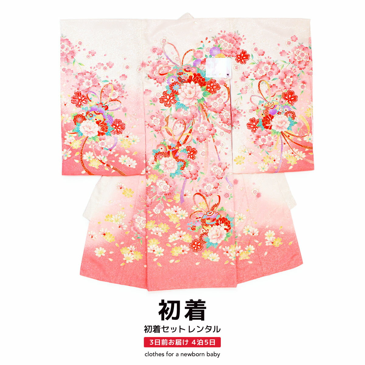 【スーパーSALE限定☆最大3000円クーポン配布中☆】【レンタル】 お宮参り 女の子 レンタル 産着 フルセット ピンク 牡丹 桜 熨斗 掛け着 うぶぎ 祝着 記念撮影 子供着物 産着セット 祝着セット 赤ちゃん 祝い着 帽子 よだれかけ 創美苑 往復送料無料