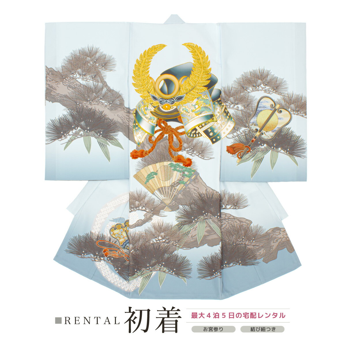 【スーパーSALE限定☆最大3000円クーポン配布中☆】【レンタル】 お宮参り 男の子 レンタル 産着 フルセット 水色 ライトブルー 兜 松 通年 掛け着 うぶぎ 祝着 子供着物 産着セット 祝着セット 赤ちゃん 祝い着 帽子 よだれかけ 創美苑 往復送料無料