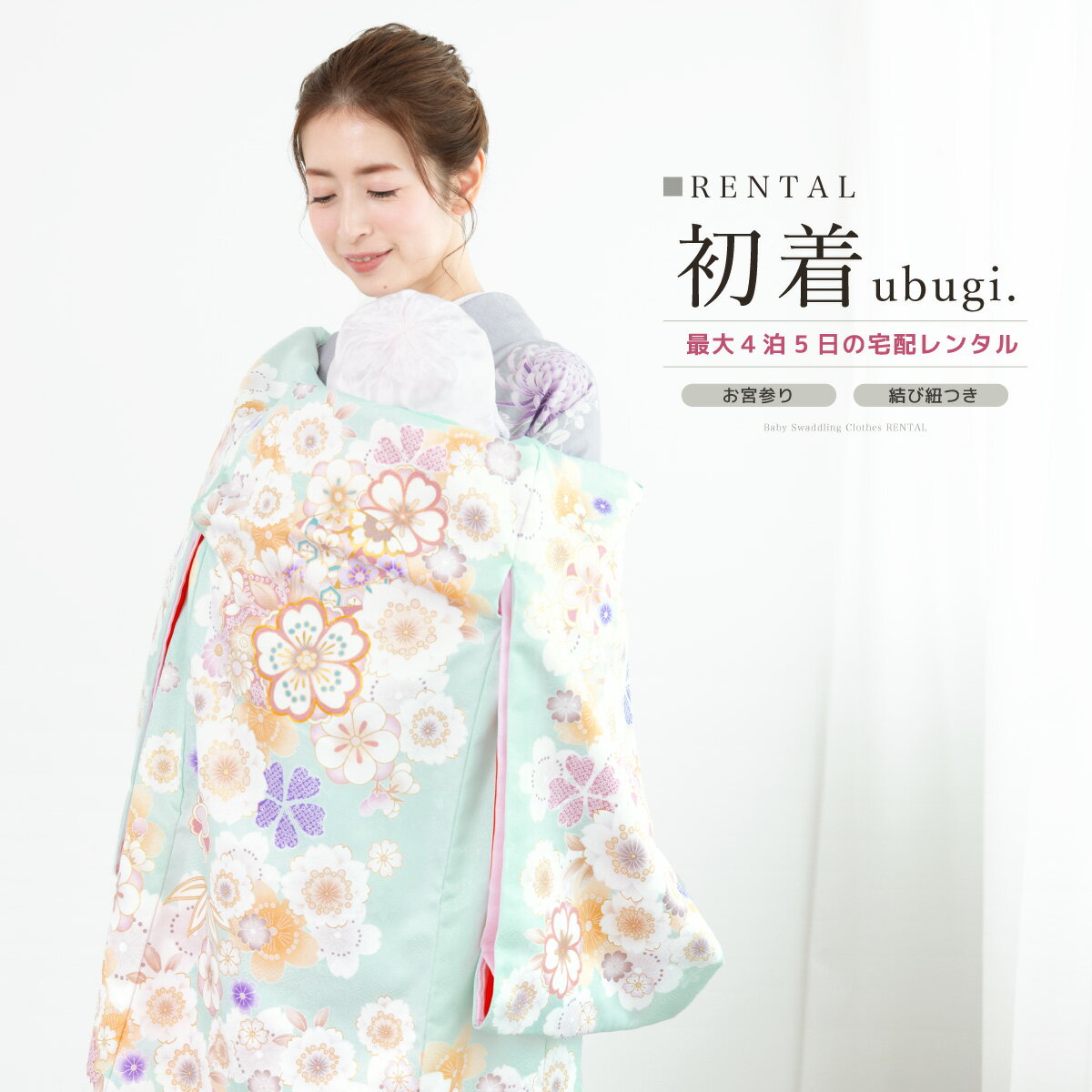 【スーパーSALE限定☆最大3000円クーポン配布中☆】【レンタル】 お宮参り 女の子 レンタル 産着 フルセット 青 桜 手毬 雪輪 掛け着 うぶぎ 祝着 記念撮影 子供着物 産着セット 祝着セット 赤ちゃん 祝い着 帽子 よだれかけ 創美苑 往復送料無料