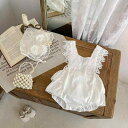 ロンパース 女の子 ベビー 春夏 プリンセス風 ノースリーブ フリル 切り替え リボン 三角 ショート丈 綿100% 薄手 肌に優しい 部屋着 お出かけ ホワイト