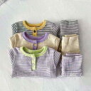 ベビー ルームウェア 男の子 女の子 男女兼用 幼児 春秋 切り替え 配色 ストライプ トップス ロングパンツ 2点セット 綿 コットン 吸湿速乾 パジャマ 部屋着 シンプル かわいい 普段使い おうち時間 リラックスウェア