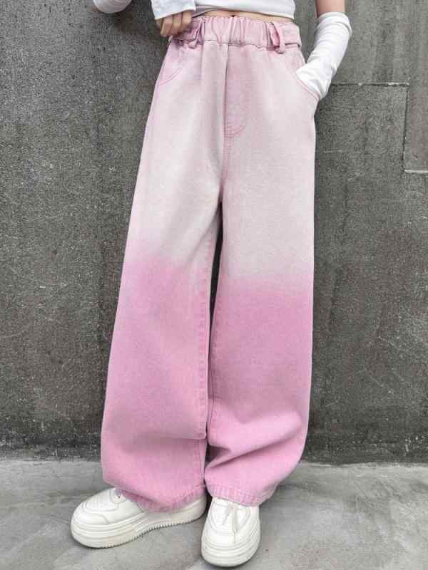 パンツ キッズ 女の子 ゆったり 楽ちん 着回し力抜群 韓国ファッション グラデーションピンク デニム ワイド ストレートパンツ 春夏 ウォッシュ加工 トレンド 長丈