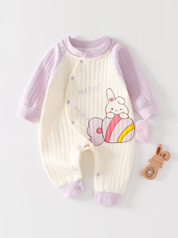 ロンパース ベビー 新生児 男女兼用 秋冬 厚手 あったか 中綿入り 長袖 綿100% 前開き 股下ボタン カバーオール ルームウェア パジャマ 出産祝い プレゼント 0-1歳 敏感肌