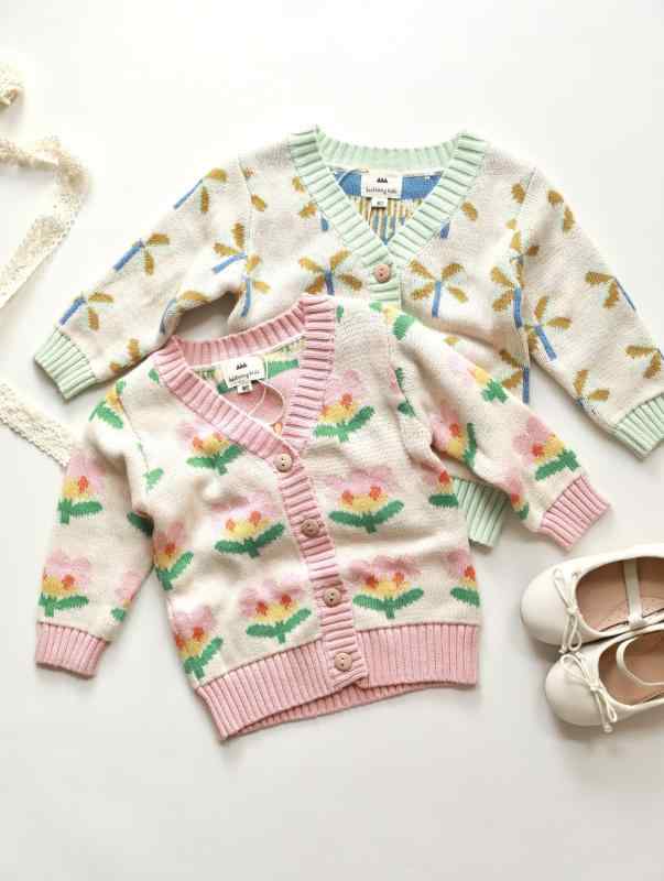ニット カーディガン キッズ 女の子 ベビー 春秋 子供服 韓国風 花柄 Vネック 長袖 かわいい 普段着 通園 通学