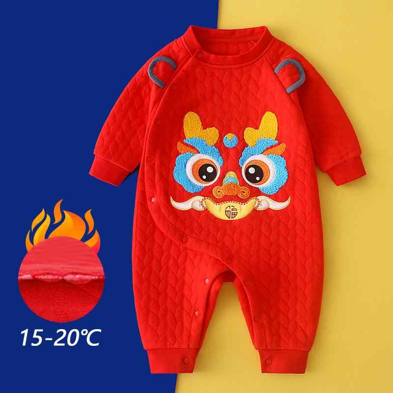 ベビー服 ロンパース 中国風 龍 春秋 冬 長袖 コットン100% 新生児 赤ちゃん 兼用 保温