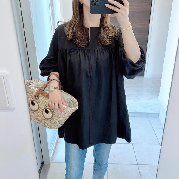 ・素材: 綿・袖丈: 七分袖・ネックライン: ラウンドネック・袖: パフスリーブ・カラー: ブラック・サイズ: S, M, L・スタイル: 日韓カジュアル・素材含有量: 30〜50%・スタイル: 日本風・カテゴリ: シャツ