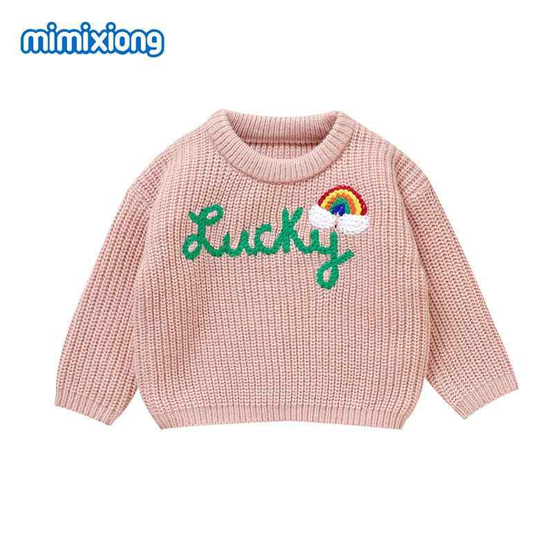 ニット ベビー服 秋冬物 立体 LUCKY アルファベット柄 トップス 男女兼用 赤ちゃん 幼児 長袖 セーター 普段使い かわいい 伸縮性 やわらかい あたたかい ピンク系