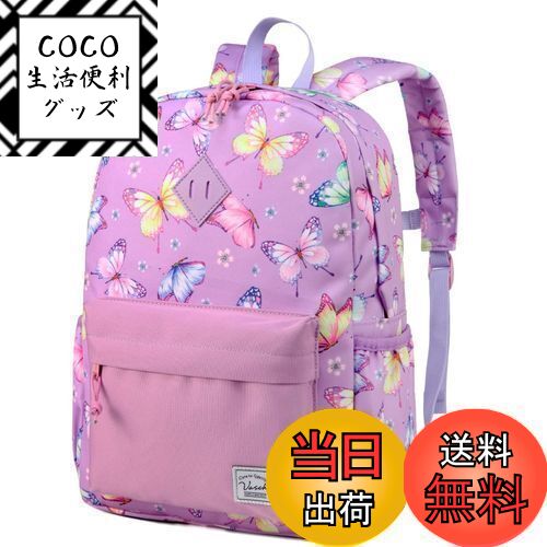 【送料無料】VASCHY リュック 子供, リュックサック キッズ 女の子 幼稚園 通園 保育園 低学年 旅行 小学生 撥水加工 可愛い ディパック チェストベルト付き パープル 蝴蝶