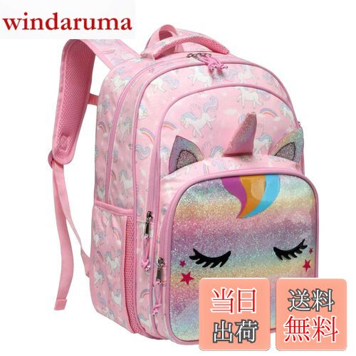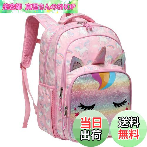 【送料無料】VASCHY 可愛い リュック キッズ 子供 女の子 小学生 18L 大容量 幼稚園 通園 低学年 高学年 バックパック 通学 A4対応 遠足 反射テープ付き プレゼント ピンク ユニコーン