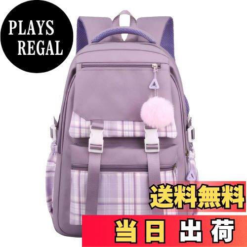 【送料無料】[Maeau] リュック 女の子 小学生 防水 通園リュック ショルダーバッグ 大容量 ガールズ ナイロン チェック 韓系 キッズ 中高学生 学院風 ジュニア 色:パープル、サイズ:Freesize