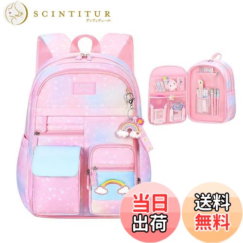【送料無料】[VIDOSCLA] リュックサック キッズ 小学生 女の子 子供 バックパック 低学年 旅行 人気 通学 おしゃれ 防水 大容量 色:01 ピンク