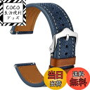 【送料無料】[WOCCI] 時計ベルト 本革 18mm 20mm 22mm 腕時計バンド デニムパターン イタリアンレザー替えベルト 色:ダークブルー、サイズ:20mm