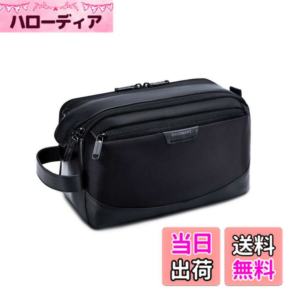 【送料無料】BAGSMART トイレタリーバッグ 大容量 バスルームポーチ 携帯用 洗面用具入れポーチ トラベルポーチ 化粧ポーチ 旅行収納 防水 お風呂 軽量 自立 出張 旅行 トラベル おしゃれ メンズ 皮革製 色:Black
