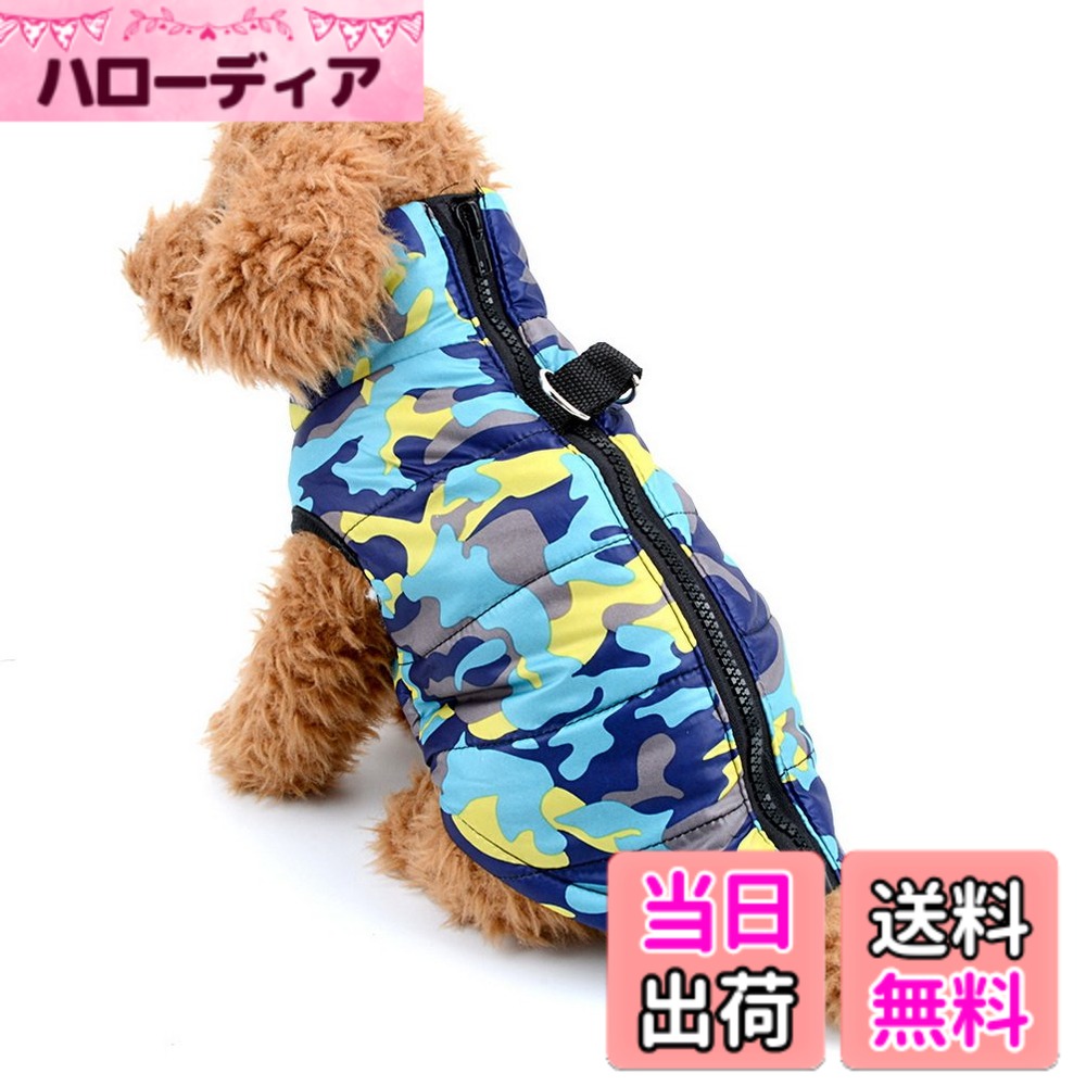 【送料無料】Zunea 犬の服 ダウンコート 迷彩柄 ジャケット 暖かい 防寒 ハーネス パーカー 小型犬 猫用洋服 ジッパー式 ベスト 軽量 ペット服 秋冬服 お散歩 色:Blue Camo、サイズ:Sサイズ (x 1)